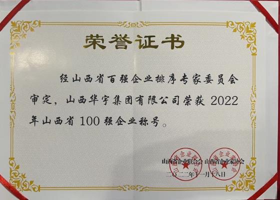 華宇集團榮獲2022年山西省100強企業(yè)稱號