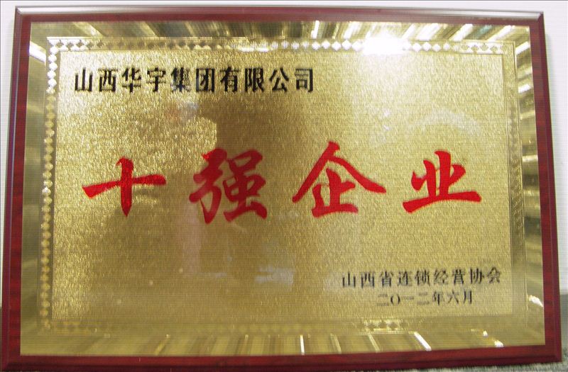 7月15日,山西省連鎖經(jīng)營(yíng)協(xié)會(huì)召開第二屆理事會(huì),對(duì)2010-2011年度山西省連鎖行業(yè)優(yōu)秀企業(yè)及優(yōu)秀企業(yè)家進(jìn)行表彰。會(huì)上授予山西華宇集團(tuán)有限公司“十強(qiáng)企業(yè)”稱號(hào)。