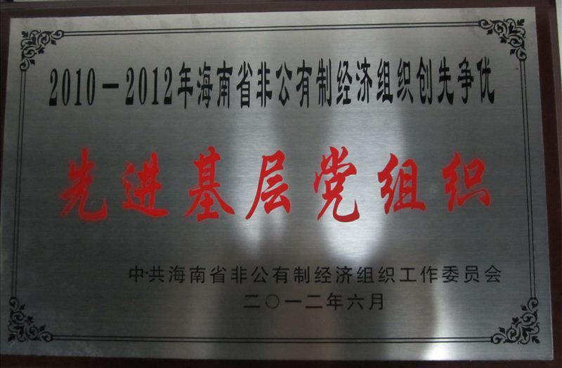 在2010-2012年海南省開展的非公有制經(jīng)濟(jì)組織創(chuàng)先爭優(yōu)活動(dòng)中,華宇集團(tuán)三亞旅業(yè)黨支部榮獲“先進(jìn)基層黨組織”稱號(hào)。7月28日,中共三亞市委統(tǒng)戰(zhàn)部副部長、市工商聯(lián)黨組書記、市非公經(jīng)濟(jì)黨工委書記黃明崇來到三亞華宇旅業(yè)公司,為華宇集團(tuán)三亞旅業(yè)黨支部授匾。