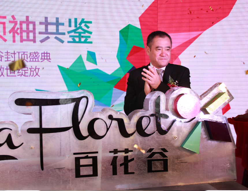 在眾多賓客“助力”下,由山西華宇集團(tuán)董事長(zhǎng)趙華山先生用色塊完成了象征華宇百花谷的四色冰雕logo,至此,華宇百花谷商業(yè)/酒店/寫字樓全面封頂
